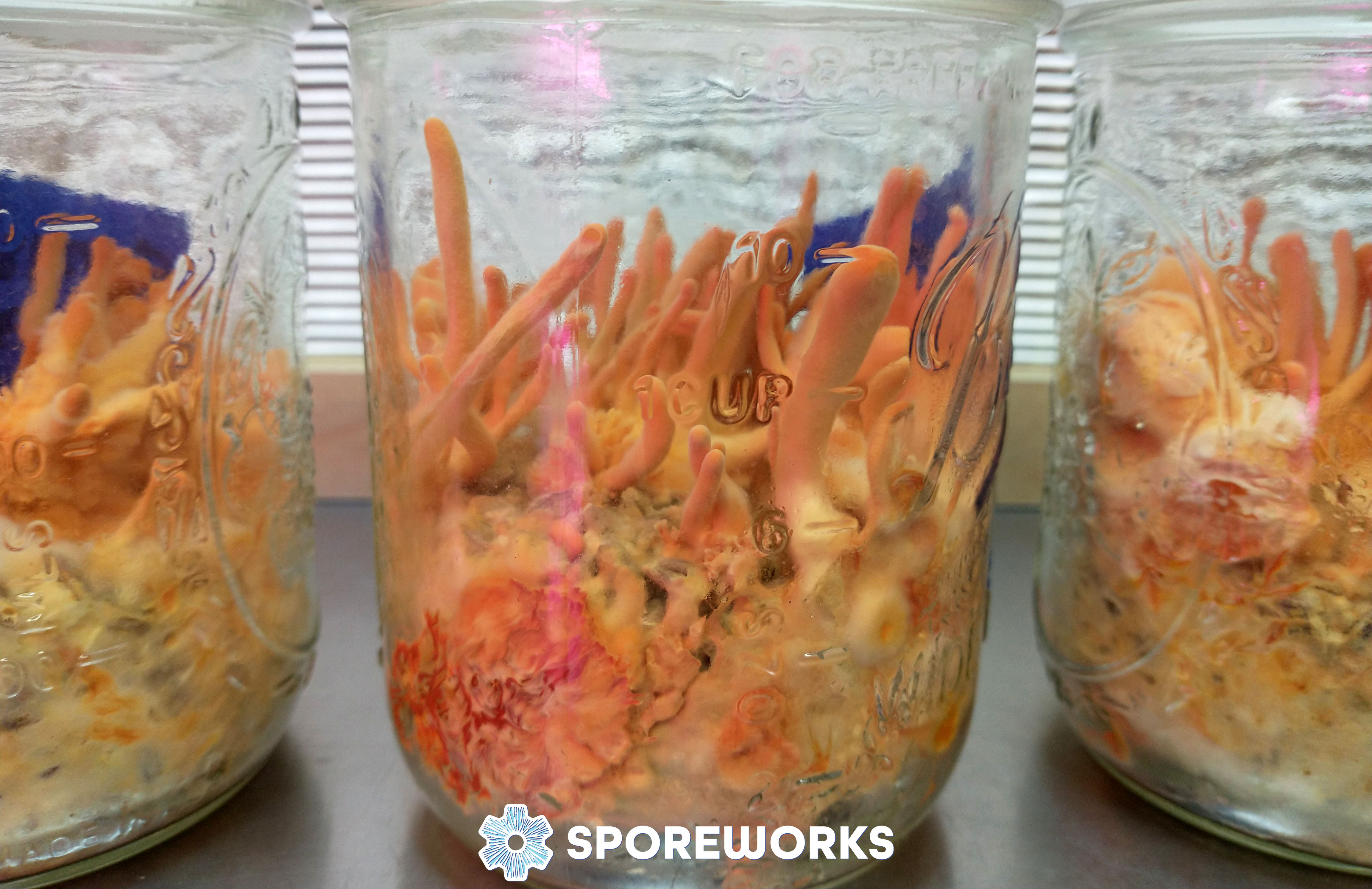 Material provided in sterile aqueous solution using 10cc BD Luer-Lok syringes. One 1.5in 16ga needle will be provided for each syringe. Comments: Cordyceps militaris is found widely throughout the northern hemisphere and has a long and complex history of collection and use by humans for a variety of purposes. Entomopathogenic (eats insects) in its natural setting, this domesticated strain grows well on supplemented grain. Cultivation Difficulty: Medium Recipe for 4 Pint Jars: